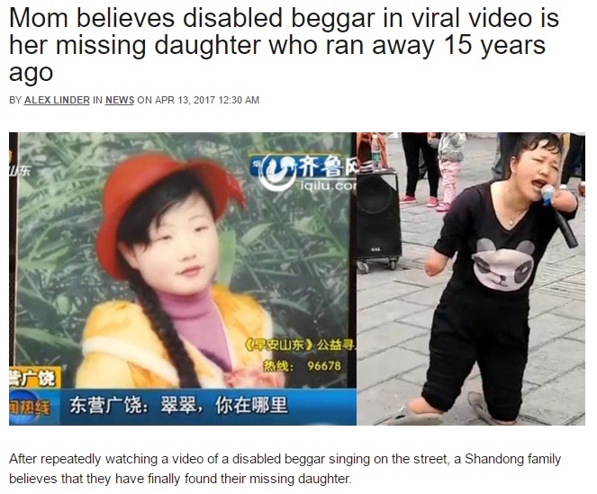 両親ショック 手足を切断され物乞いする女性は15年前に失踪したわが子か(中国)