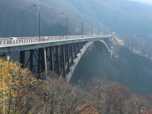 県内で有名な自殺スポットであり、橋と川面の高低差が60m以上ある。