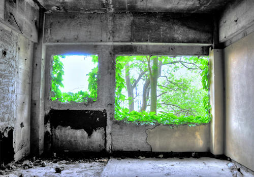 しかし窓ガラスは全く残っておらず、体を成していない。