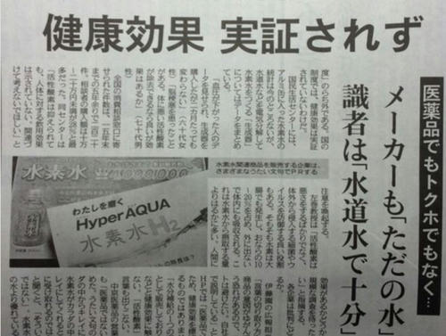 【知ってた】東京新聞が水素水を特集!専門家の分析結果も記載!結論は「ただの水」「健康効果実証されず」