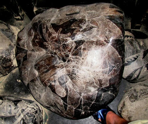 第一に、一人で、あるいは少数の住民が、どうやって5万個もの石に複雑な模様を描くことができたのか。