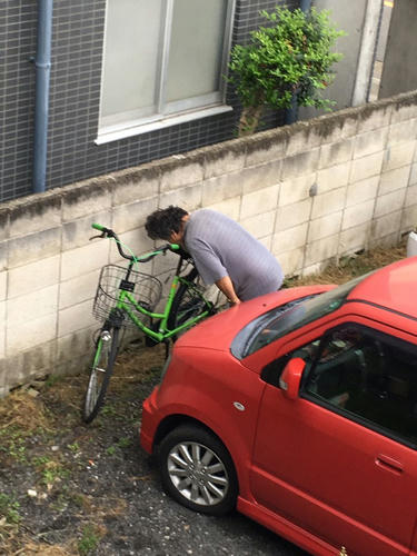 家の下に住んでるおじさんが、前からうちの自転車になんかしてて、今日こっそりママと見てたら、うちの自転車、舐めまわしてた。