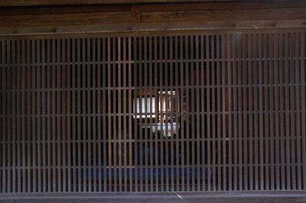 暑かったんで、僕は離れから母屋に戻る途中でその連子格子を開けた