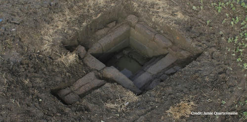 調査チームは、井戸の周囲を壁で覆って、農業機械などで傷つかないよう補強工事を実施。