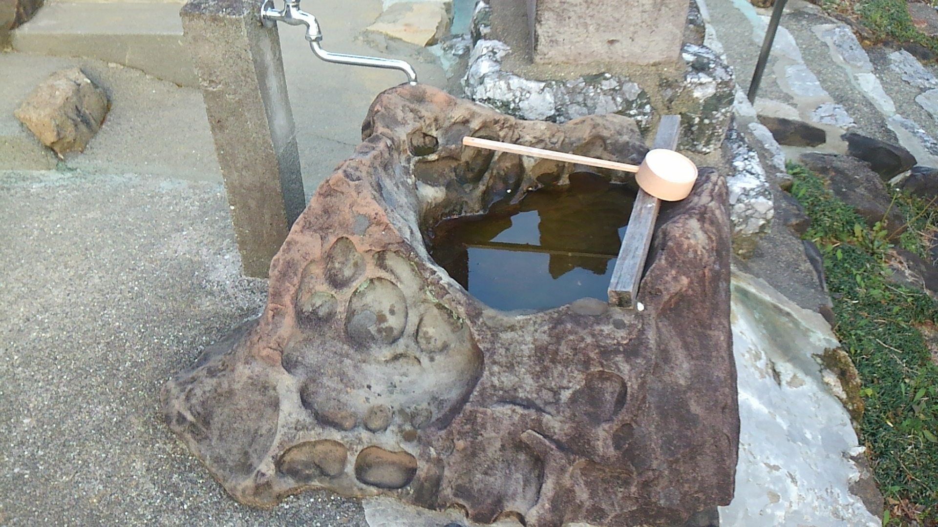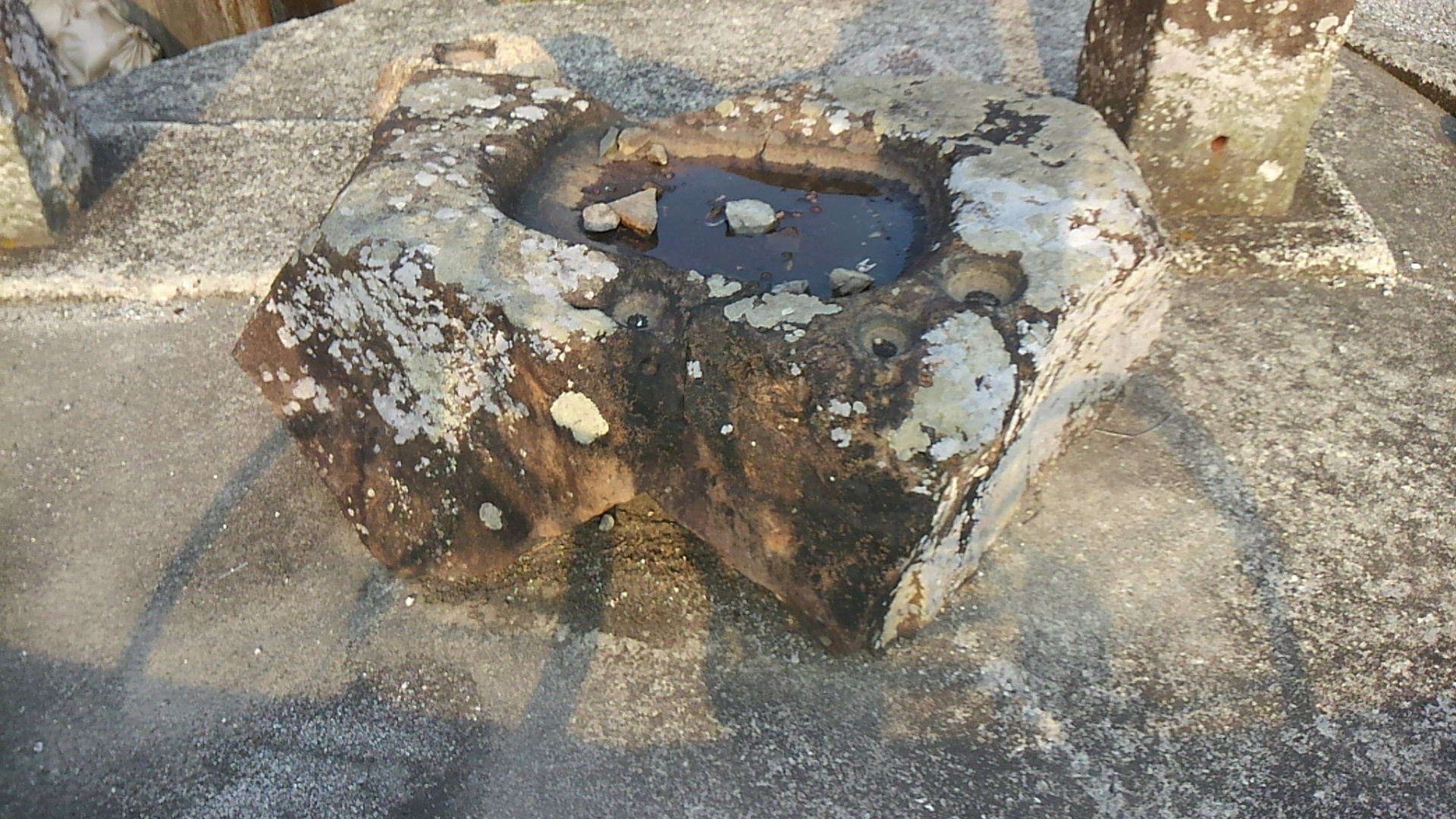 手水石に限らず、石灯篭の台とか石段とかでも見つかることがある