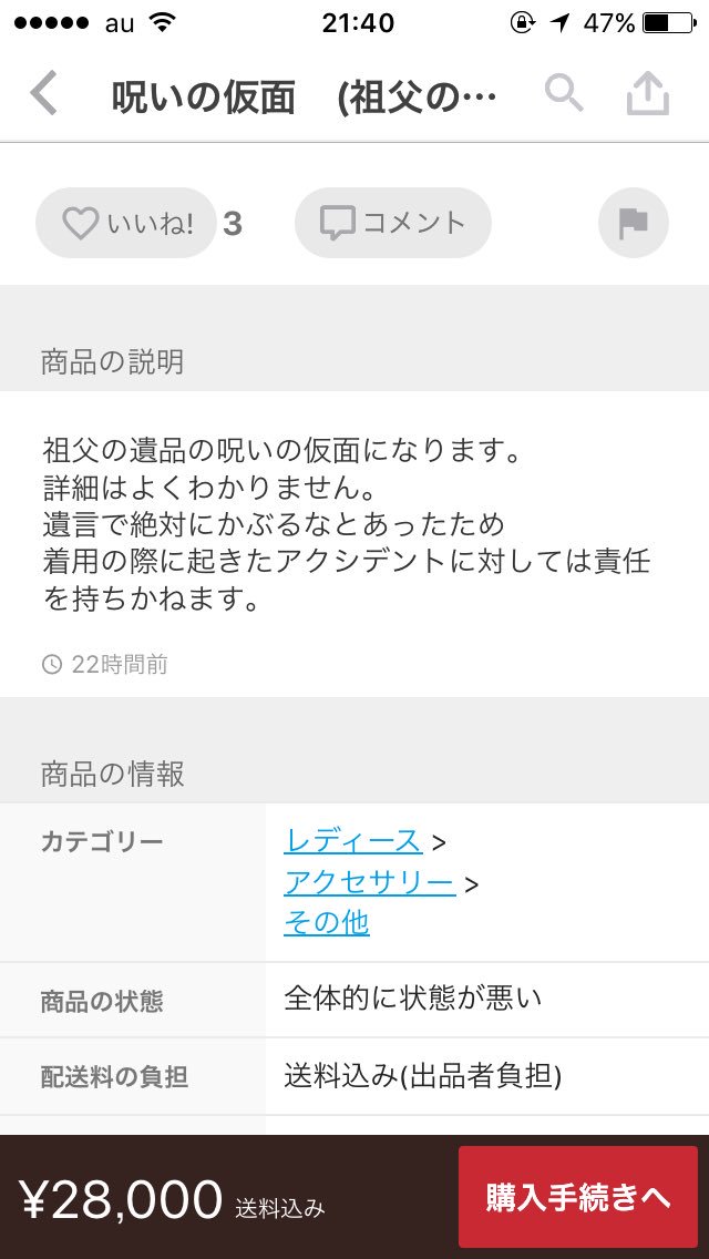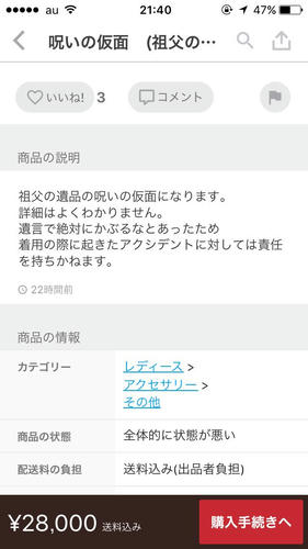 呪いの仮面、売れたぁぁぁああああ!!!お買い上げ、ありがとうございますぅぅううう!!