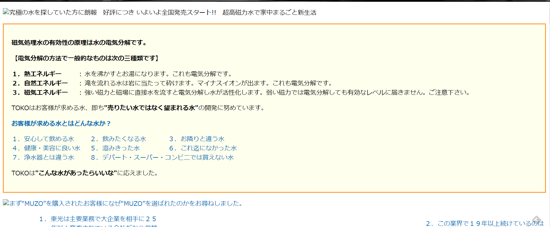 ああ、マイナスイオンとか水素水ビジネスの世界ね