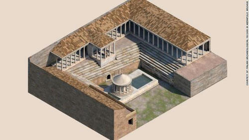 発掘調査でプルトニウムを囲む座席があった証拠を発見。施設を3次元で復元した予想図
