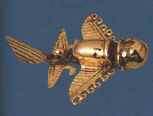 1969年、南米コロンビアのシヌー地方の古代遺跡から、いくつも発掘された黄金製ペンダント。