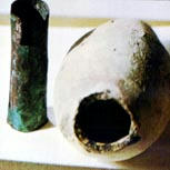また、壷が建物の基礎部分から発見されていることから、実際は宗教的な祈祷文を入れて埋める壷であり、金属棒はただの巻物の芯、周りの金属はただの保護容器である可能性が高い。