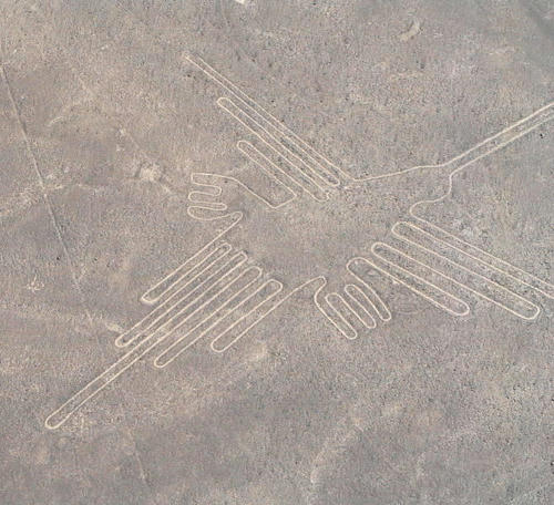 ナスカの地上絵は、ペルーのナスカ川とインヘニヨ川に囲まれた乾燥した盆地状の高原の地表面に「描かれた」幾何学図形、動植物の絵。