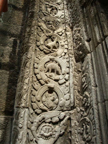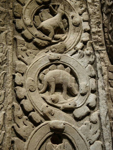 タ・プローム寺院遺跡の門に掘られたレリーフ。