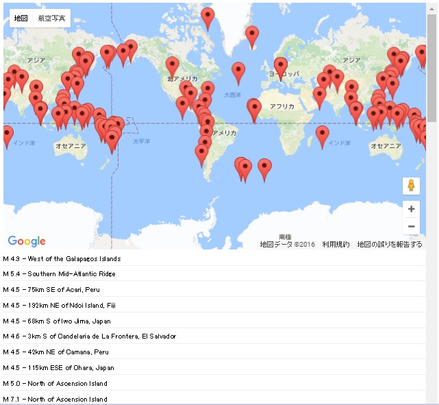 世界で発生した最新の地震マップで「直近1週間に発生したM4.5以上の地震」を見てもこれだけの数があります。