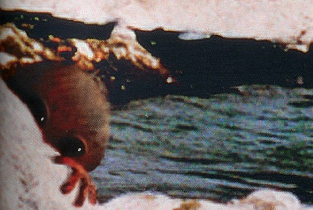 水鳥とかカワウソの類かな、と思ったんでしばらく待ってたんだけど、いくら待っても出てこない