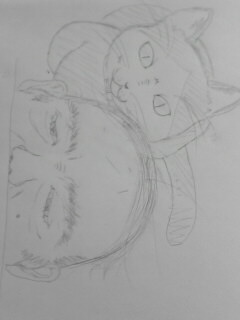 残念ながら猫は散歩中、おっさんは見えないので絵で勘弁。