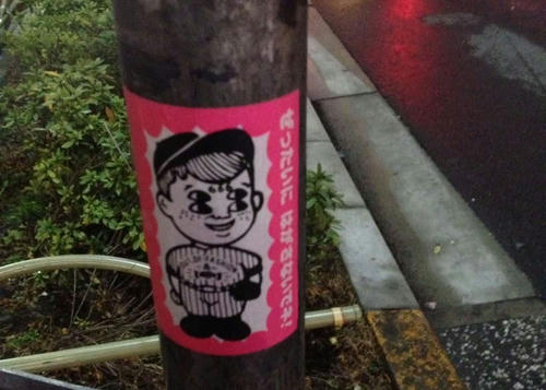 都内在住の者だがこの前とある繁華街の電信柱に子供のイラストのシールが貼ってあった