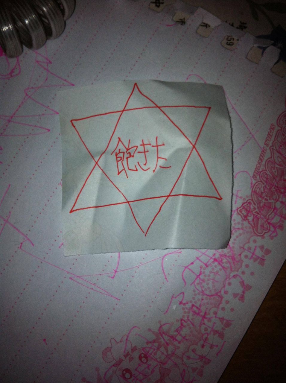 5cm×5cmの紙に六芒星、その中に「飽きた」と赤で書いて枕下に敷いて寝るやつだった