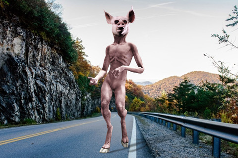 【恐怖】アメリカの田舎道路で頭がブタ、体が人間という気持ち悪い生物が出現していた!!!