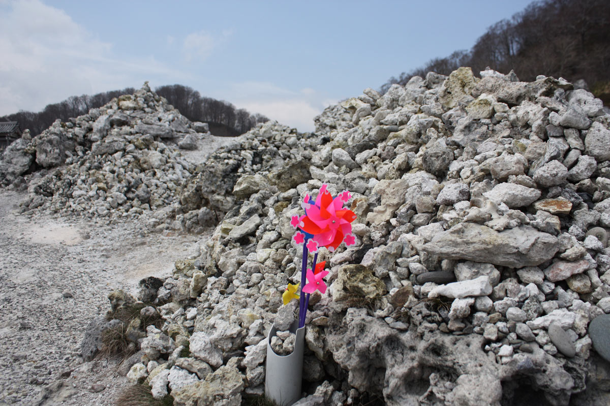 東日本大震災により地蔵群は荒れ果て、現在は一時的に(?)洞窟から外に運び出され観音像の近くに並べられているようだ。