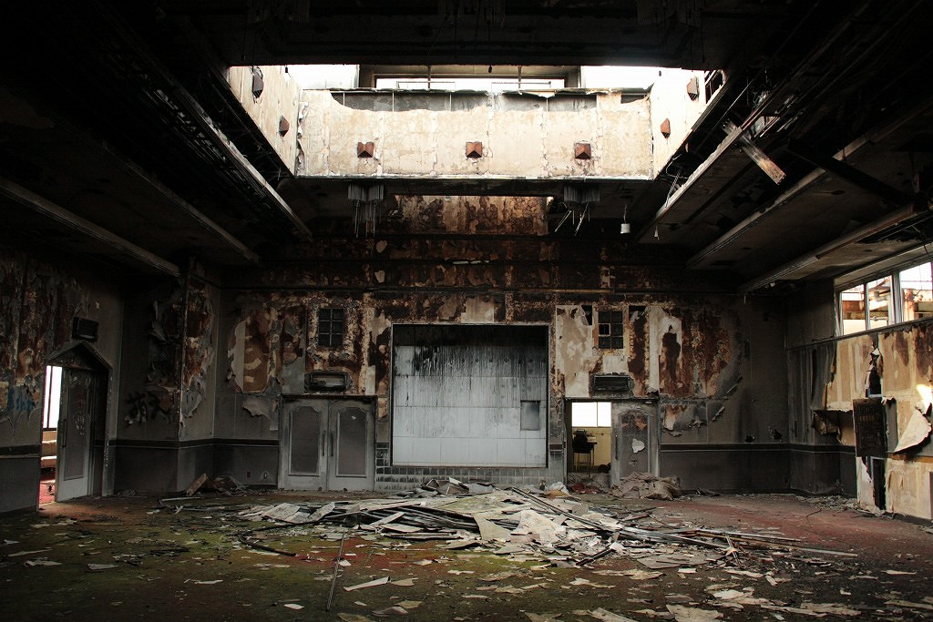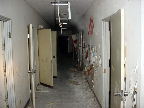 医療器具などはほとんど回収されており、病院風お化け屋敷のような印象を受ける。