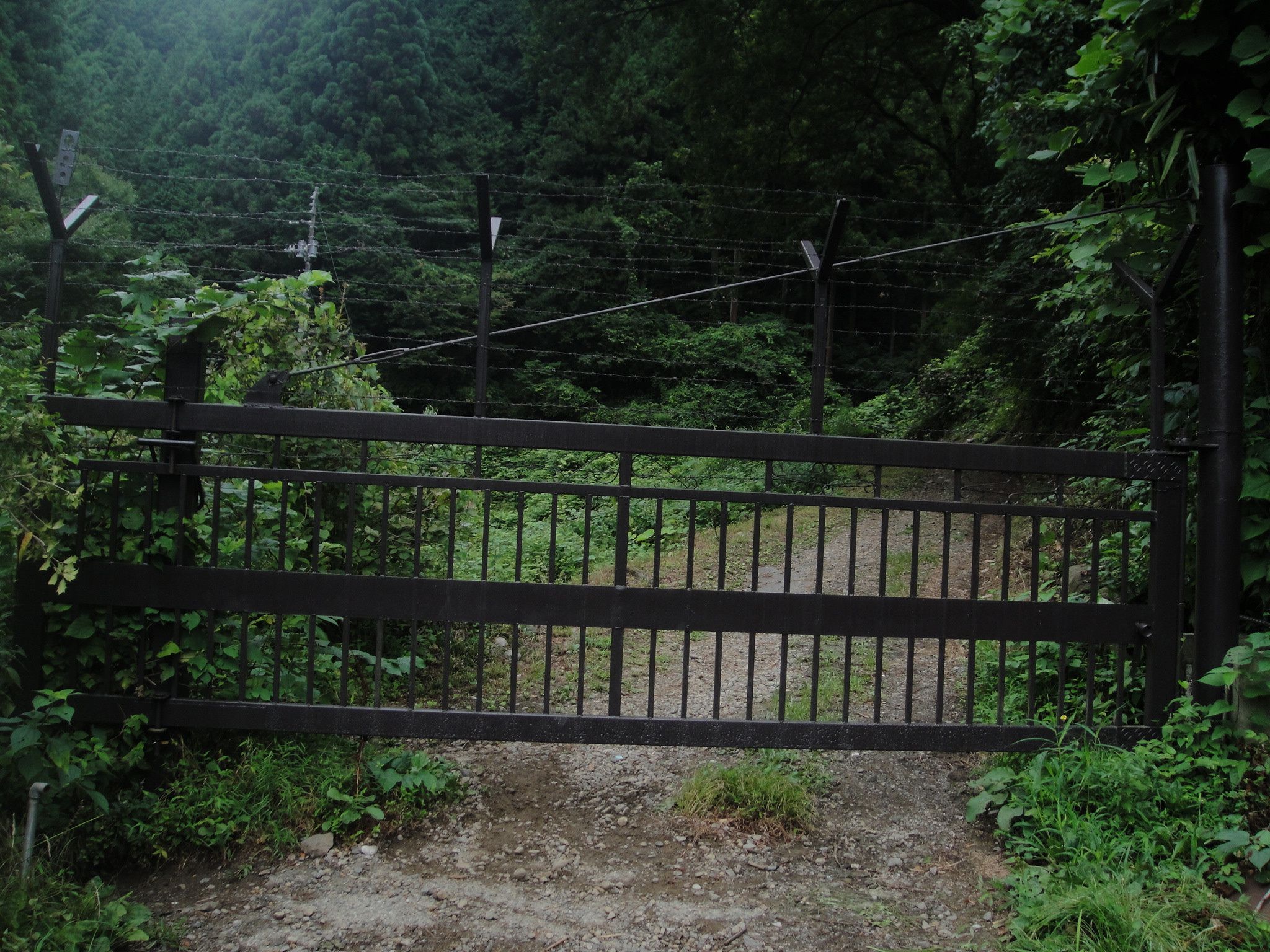 不動尻青少年キャンプ場の閉鎖に伴い、門の先の道は車両通行止めになっている。