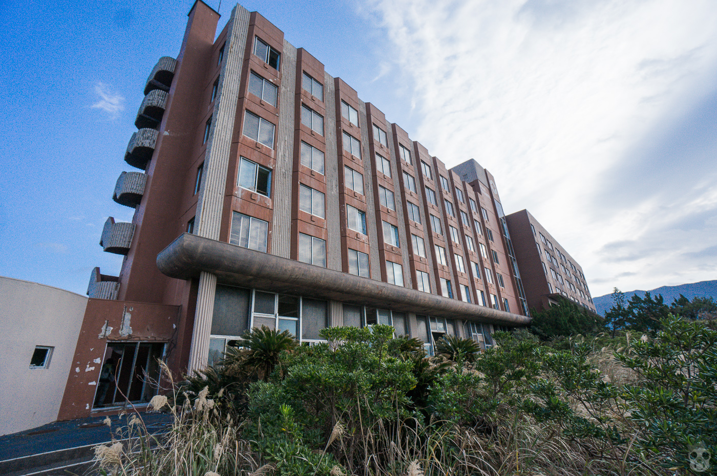 全国的に有数な心霊スポット。看板塔にある「活魚」の文字から通称「ホテル活魚」と呼ばれている。