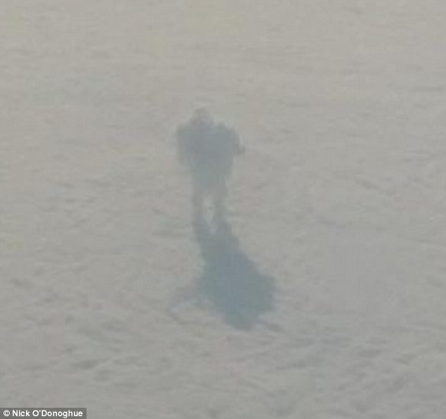 撮影者のニック・オドナヒューさん(30歳)は、仕事でオーストリアからロンドンに移動中、旅客機の窓から外をみると、雲の上に大きな人間のようなものが立っているのを目撃。驚きながらも持っていたカメラで写真に撮ることに成功しました。