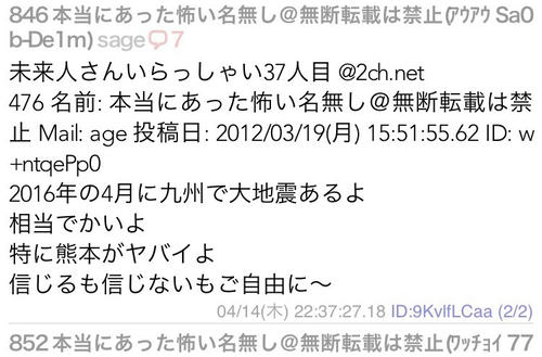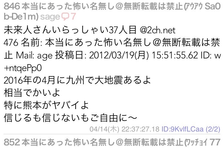 家の母親が3.11予言したんだけど4.14に大地震がくるって言ってる