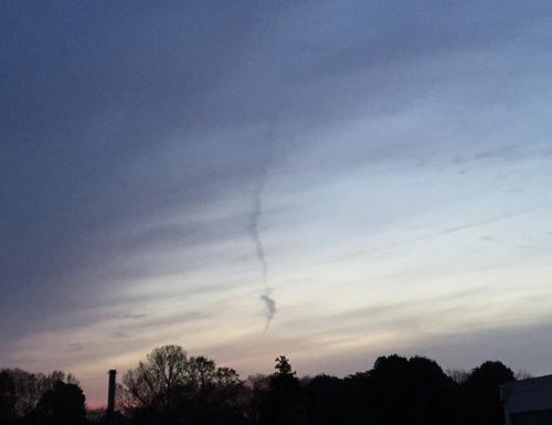 地震雲としてよく見られるのが、こちらの空に狼煙のように上る不気味な雲です。