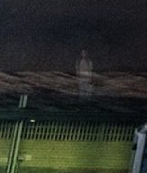 しかし画像の右端、倉庫らしき建物の屋根部分、煙のような白い影に注目してほしい。拡大してみると、なんとそれは少女の姿をしているのだ!