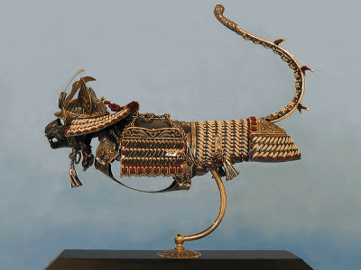野口哲哉「着甲武人猫散歩逍遥図」2008年紙本アクリル彩色
