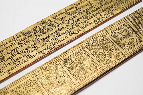 漆塗りした貝葉に金箔を押し、黒漆で経文を書いた豪華な経典で、マージーズィ体ビルマ文字を用いている。