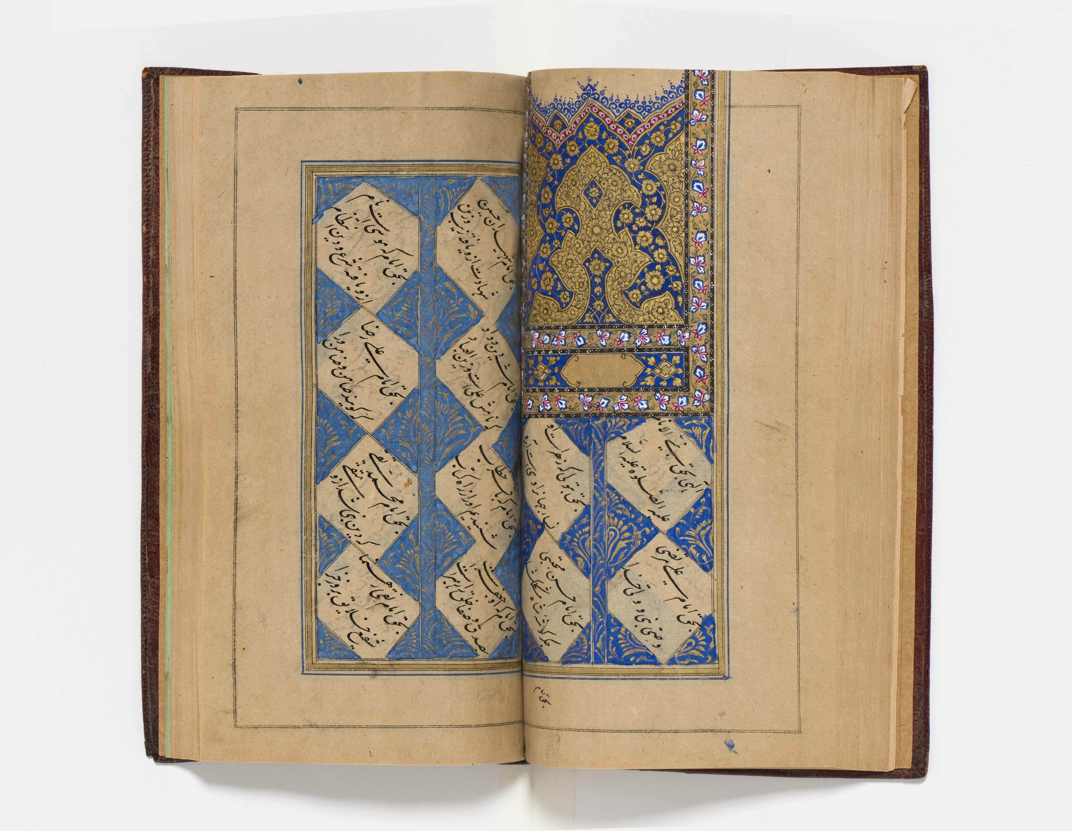ナスタアリーク体で書かれた、ペルシャの詩人ニアーズの自筆書。神の名前のほか「40回読めばいいことがある」などと記されている。