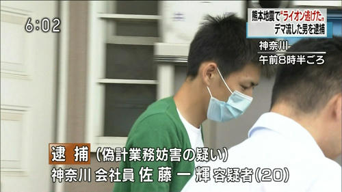(管理人注:関連記事:【【最悪】悪質な人が「地震で動物園からライオンが放たれた」とデマ拡散で大混乱!警察「デマと判明」】)