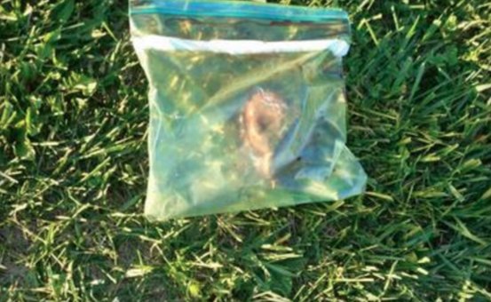 草の上に横たわっている小さなジップロックに気づき、中を見ると、そこには心臓があった。