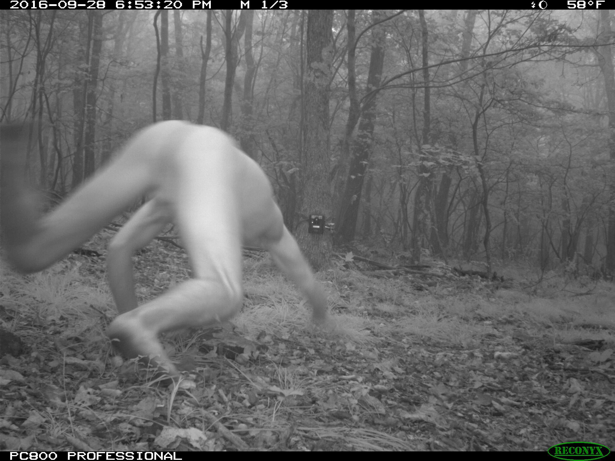 【米国】野生動物を観察するため森にカメラトラップを仕掛けたところ、四つんばいで走り回る『謎の全裸男』が撮影され研究者困惑