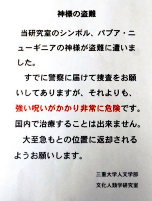 【社会】三重大の「神様」盗難、時効迫る 「強い呪いがかかり非常に危険」のチラシで話題