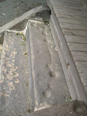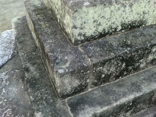 手水石や石段として利用される前に穴があいてた可能性もあるし