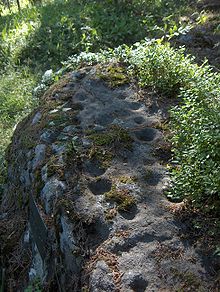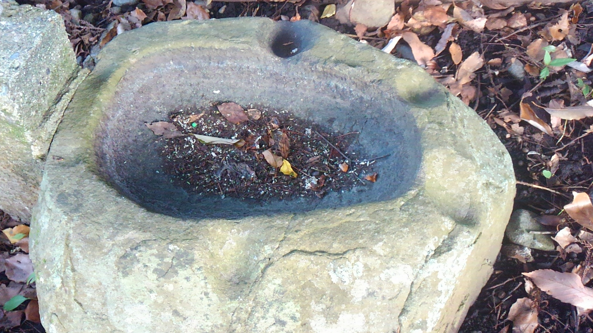 手水石に限らず、石灯篭の台とか石段とかでも見つかることがある