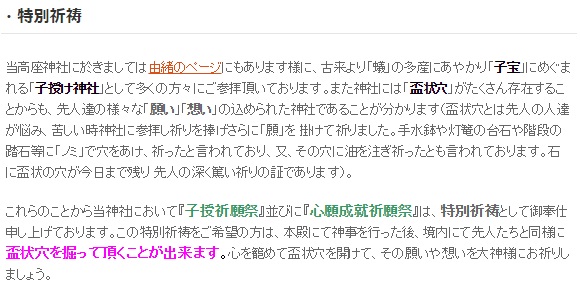 もし盃状穴を掘って祈願したい人おったら、兵庫の高座神社ってとこでやらせてもらえるらしい