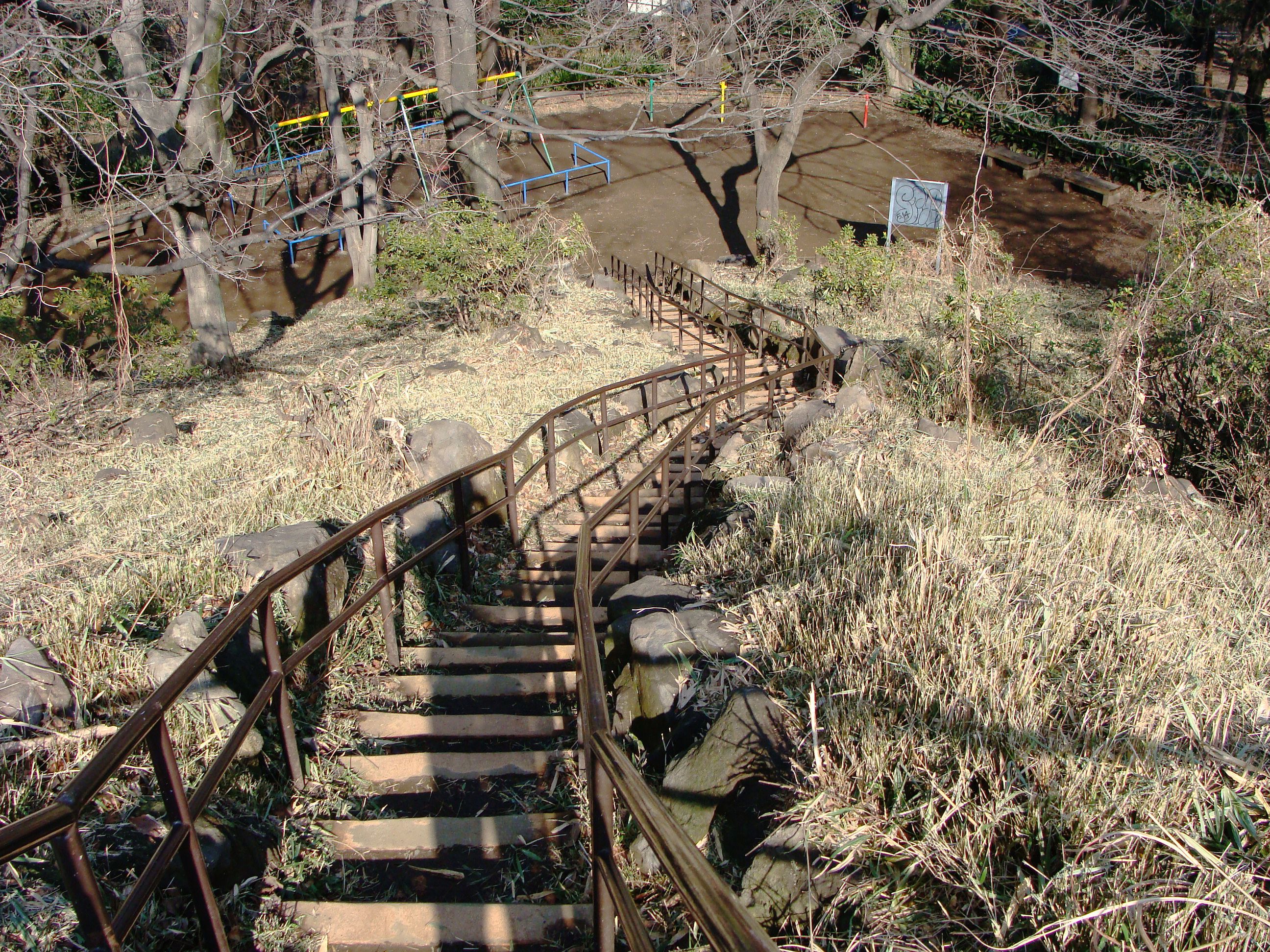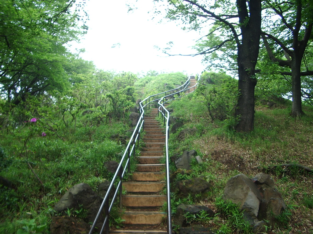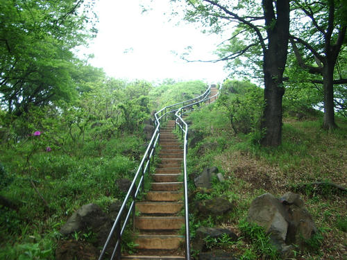 不安を感じ始めた、その時! 小高くなった斜面に階段を見つけた。