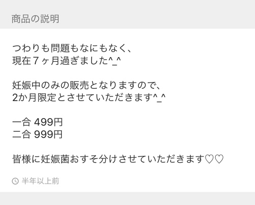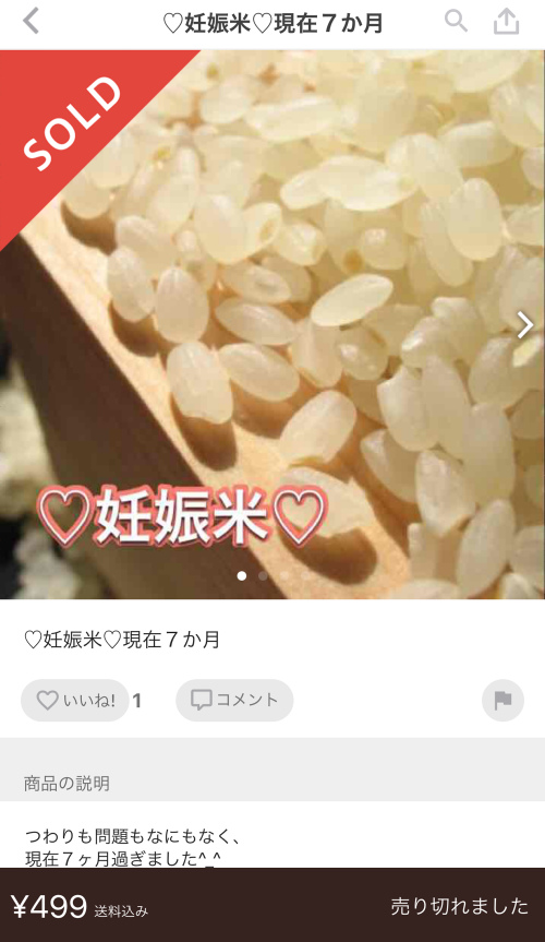 今メルカリで妊娠菌がついた「妊娠米」というものが販売されている。