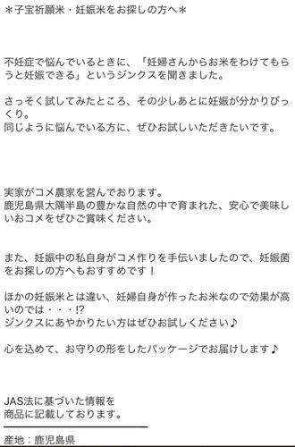 引用元:【オカルト】妊娠しやすくなる「妊娠米」なるものがメルカリで販売される もちろん根拠無し