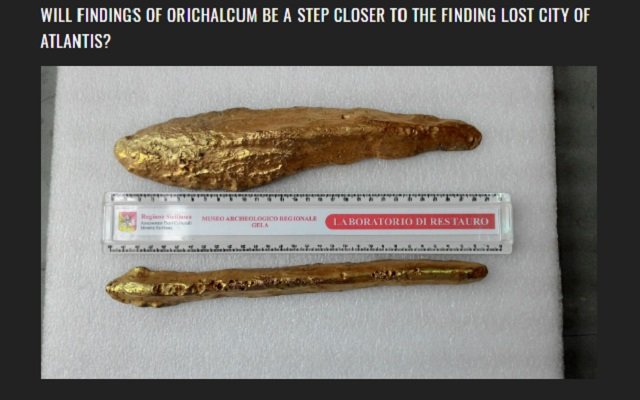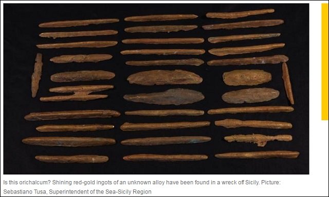 そして2015年、イタリア・シチリア島ジェーラの海岸から300メートル離れた海底30メートルに沈む2600年前の貿易船から、ついにオリハルコンらしき金属のインゴットが発見されたのだ。
