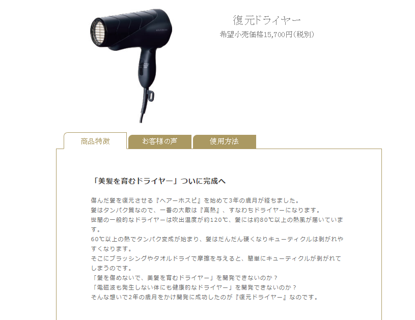 引用元:【悲報】水素水に次いで復元ドライヤーなるものが販売されてしまう