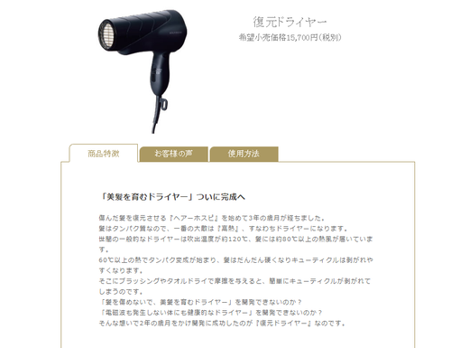 【悲報】水素水に次いで復元ドライヤーなるものが販売されてしまう