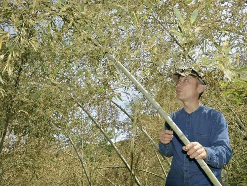 静岡県南伊豆町でタケノコを生産している山本剛さん(76)と長男哲農さん(39)は3月、ハチクの竹林約30平方メートルが緑色から茶色に変わっているのを見つけた。