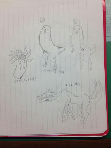 他に見たものといえば、狛犬っぽいヤツとか、黒い球体に人間の口がついてたり、囚人服みたいな模様のヒトガタだったり、和服を着たキツネ耳の結納の行列だったり