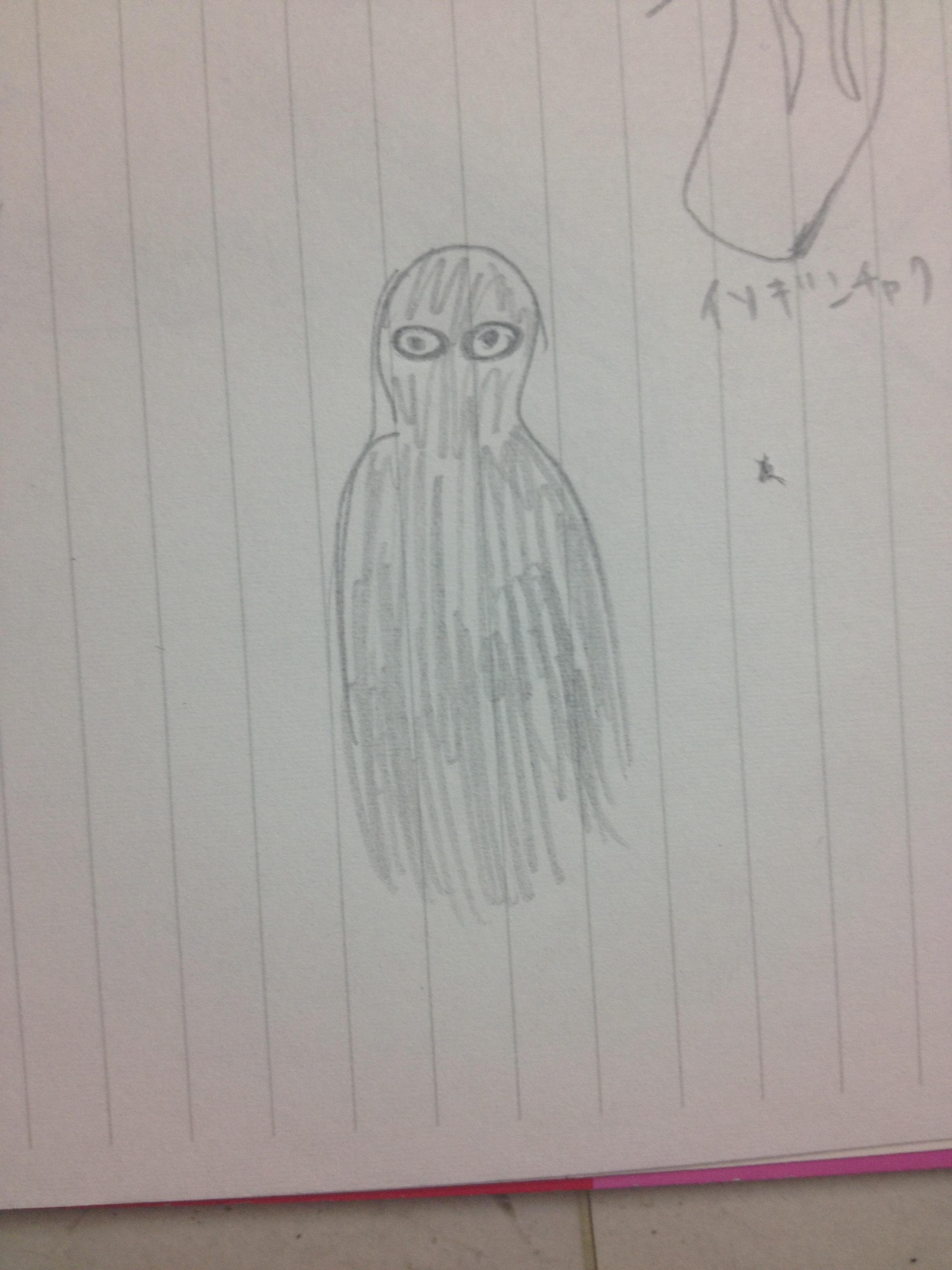 横顔だったし遠かったけど顔は人の顔に近かったけど鼻にあたる突起がなくて、鼻の下(上唇?)がすごく長いみたいな感じで、目は彫刻刀で彫ったような切れ長な形。
