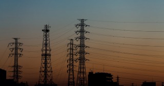 高圧電線?なのかな。普通より高いところに掛かっている電線があって、そこを見たら何かがぶら下がってる。